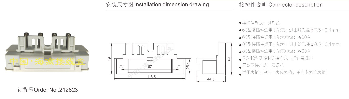 产品分类:单相简易电能表接插件459-461