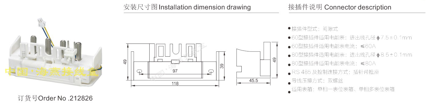 产品分类:单相简易电能表接插件459-461