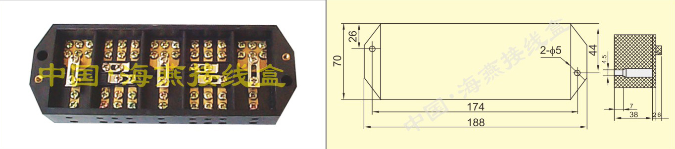 英文名称:FJ6/PJ2 (anti-electricity theft bakelite) Three-phase Three-wire energy measuring terminal block
