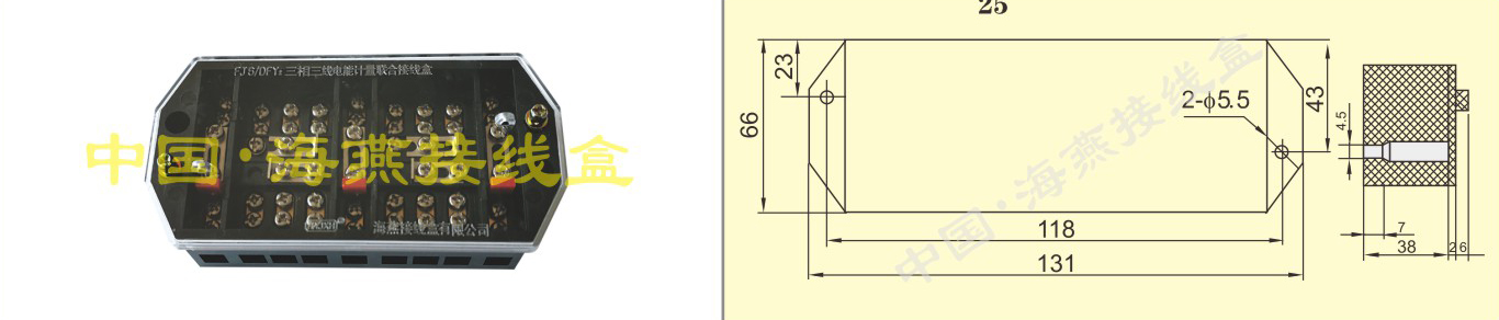 英文名称:(Bakelite injection)Three-phase three-wire energy measuring terminal block