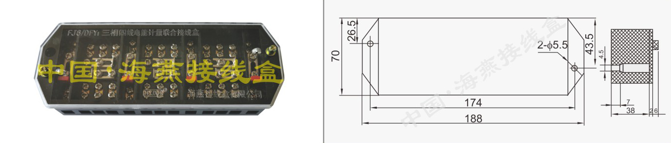 英文名称:(Bakelite injection)Three-phase four-wire energy measuring terminal block