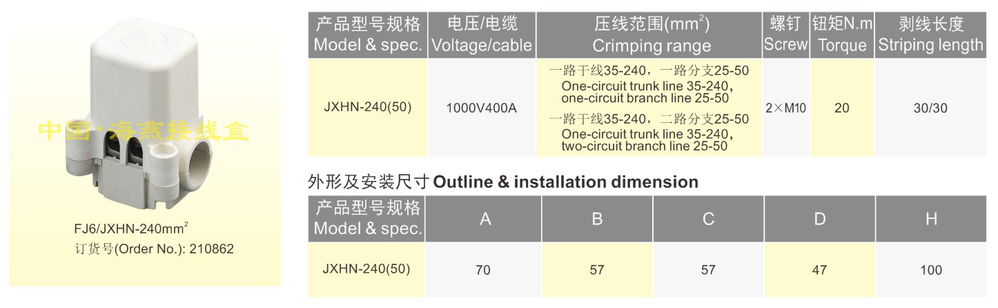 FJ6/HYJ HYC、 HYD10/ V0系列防火绝缘穿刺线夹1KV394-400