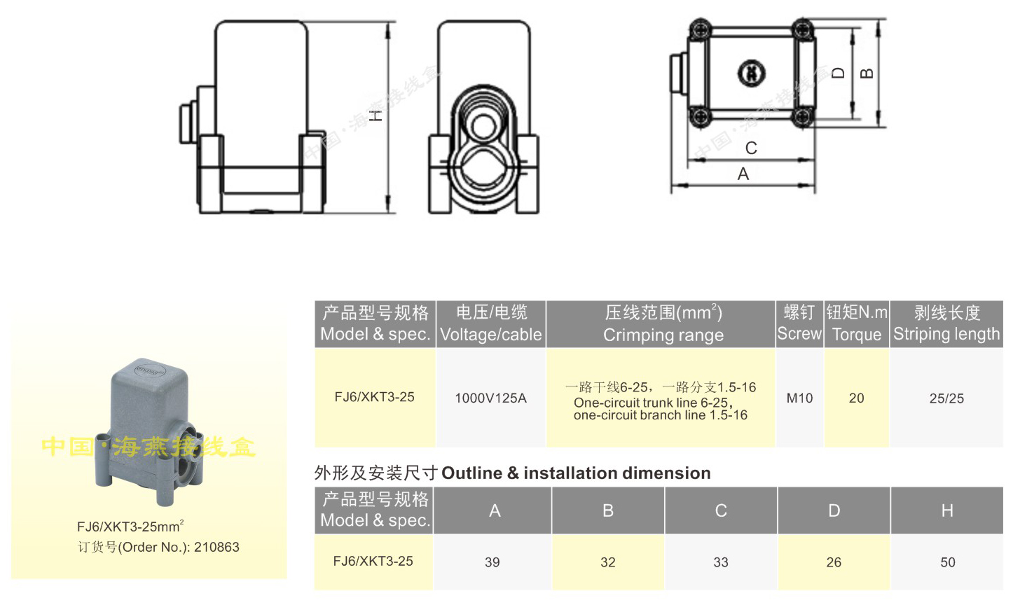 FJ6/HY系列插入式一进一出计呈箱接线盒019