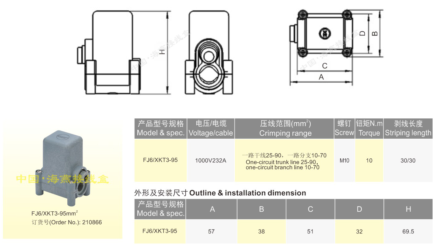 FJ6/HY系列插入式一进一出计呈箱接线盒019