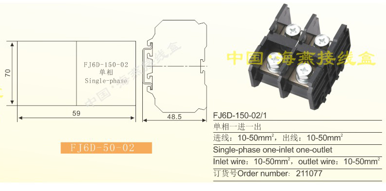 产品分类:FJ6D-150-01导轨式接线端子161-162
