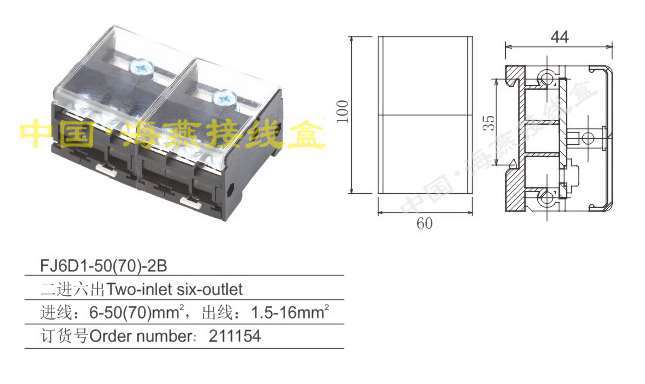 英文名称:combined terminal blocks(two-inlet six-outlet)