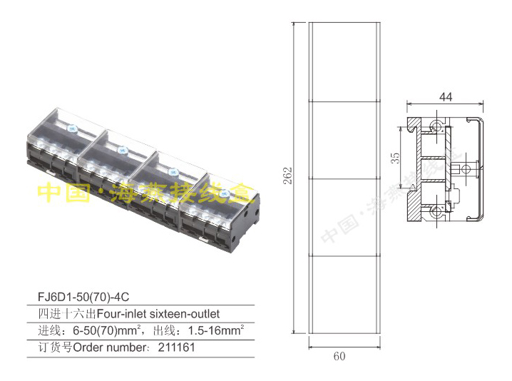 英文名称:combined terminal blocks(Four-inlet sixteen-outlet)