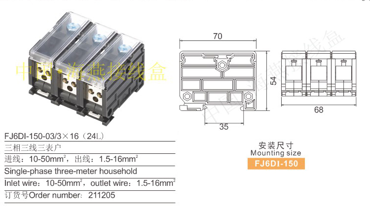 产品分类:FJ6DI-150-01导轨式组合接线端子172-181