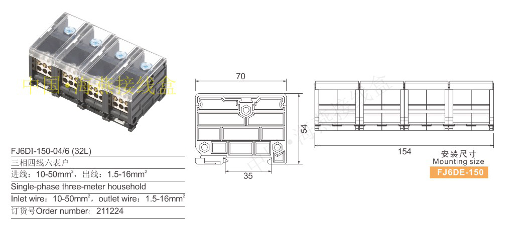 产品分类:FJ6DI-150-01导轨式组合接线端子172-181