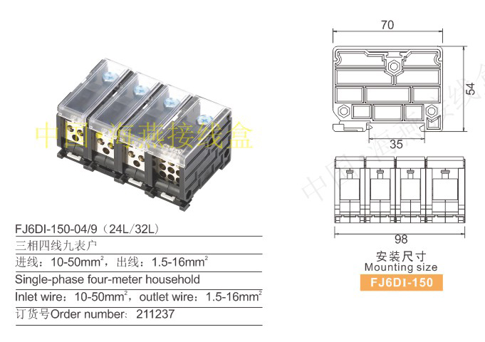 产品分类:FJ6DI-150-01导轨式组合接线端子172-181