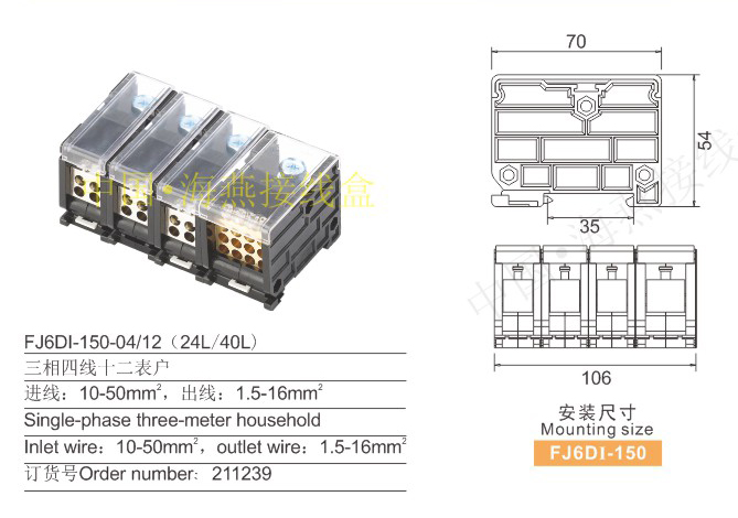 英文名称:Guide rail type connection terminal