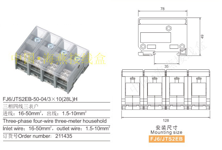 产品分类:FJ6/JTS2E1,JTS2EB-04多用途端子三相四线212-216