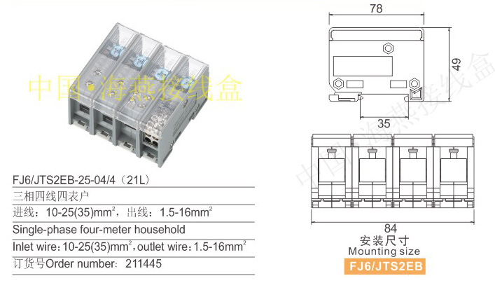 产品分类:FJ6/JTS2E1,JTS2EB-04多用途端子三相四线212-216