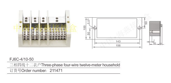英文名称:Three-phase four-wire series heavy current terminal blocks for measuring box (hole insertion type)