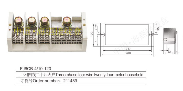 英文名称:Three-phase four-wire series heavy current terminal blocks for measuring box (hole insertion type)