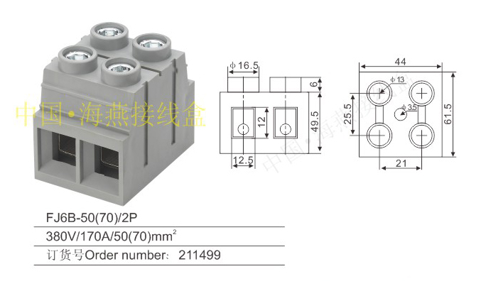FJ6B-50(70)/2P底座封闭型接线端子排