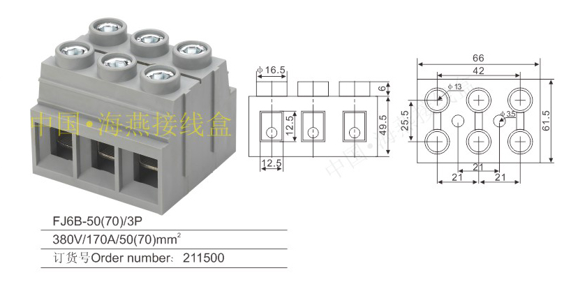 FJ6B-50(70)/3P底座封闭型接线端子排
