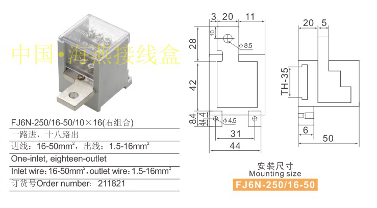 英文名称:neutral line terminal block (equipped with circuit breaker on the right)