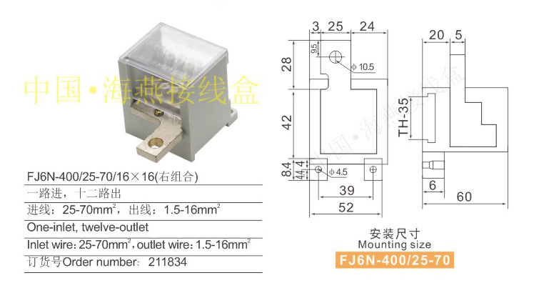 产品分类:FJ6N-400/25-70系列零线端子252
