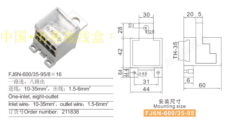 产品分类:FJ6N- 600/35-95系列零线端子253