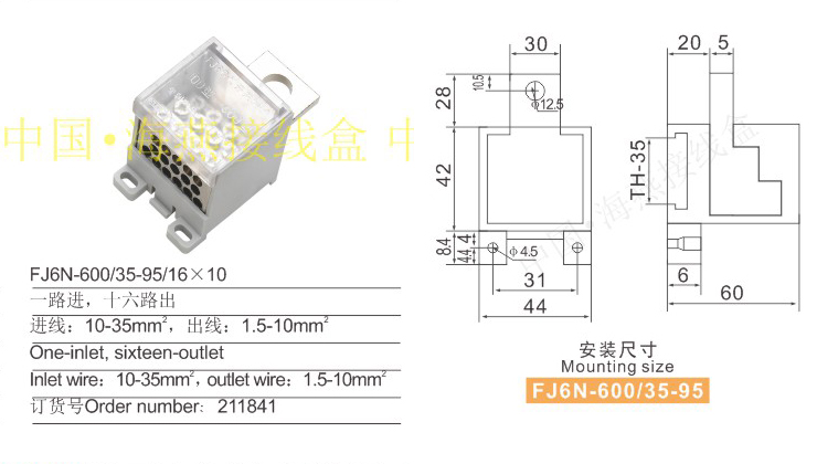 产品分类:FJ6N- 600/35-95系列零线端子253
