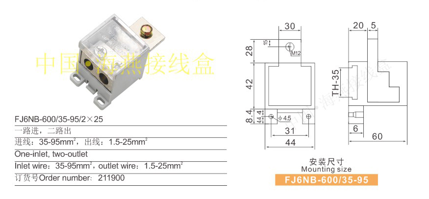 产品分类:FJ6NB- 600/35-95系列独立式零线端子接鼻式258