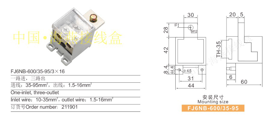 产品分类:FJ6NB- 600/35-95系列独立式零线端子接鼻式258