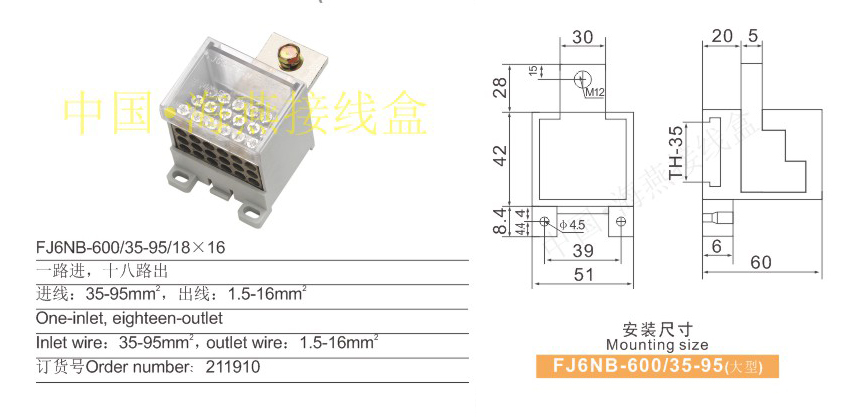 英文名称:independent type neutral line terminal block (connection lug type)
