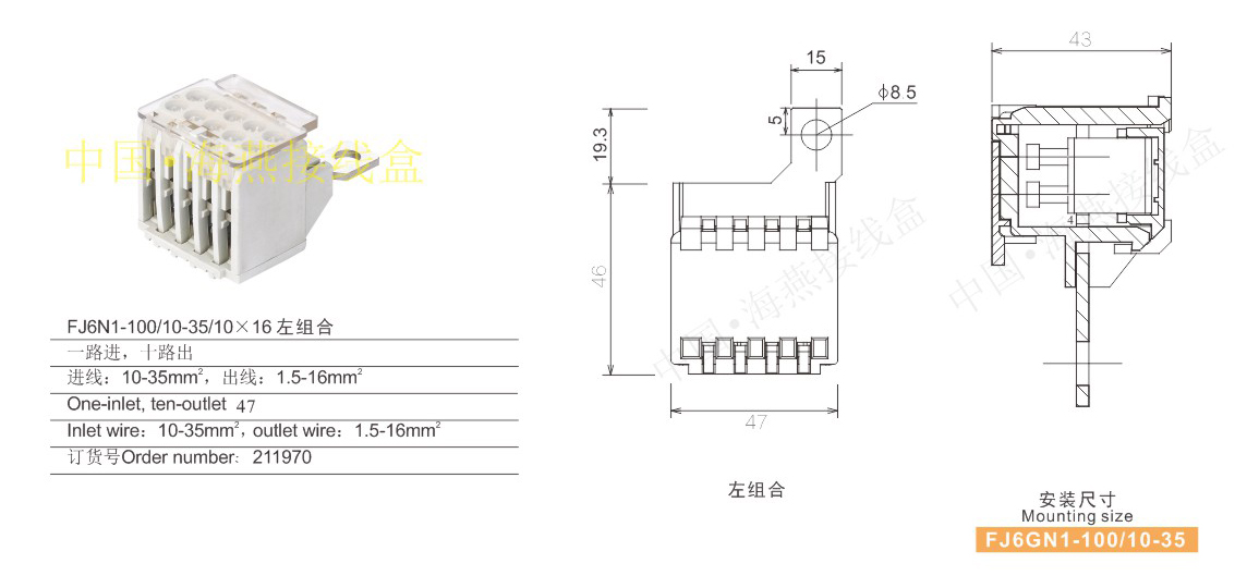 产品分类:FJ6N1- 100/10-35系列零线开关端子273-276