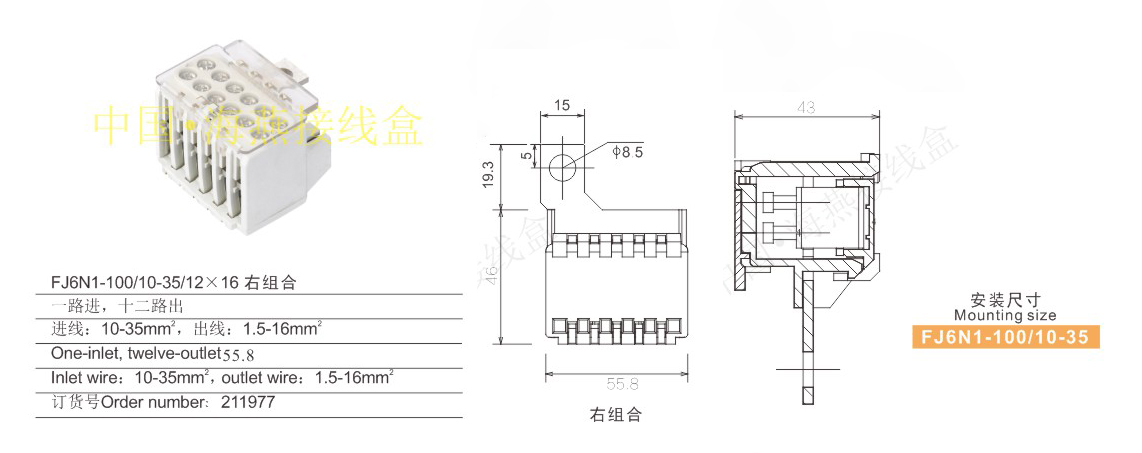 英文名称:neutral line terminal block