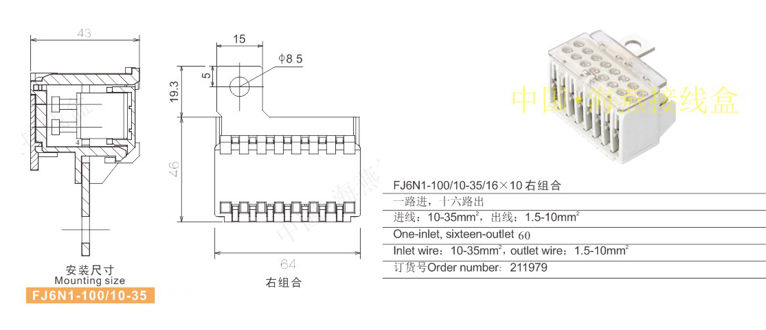 产品分类:FJ6N1- 100/10-35系列零线开关端子273-276