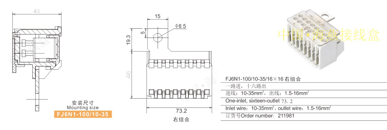 产品分类:FJ6N1- 100/10-35系列零线开关端子273-276