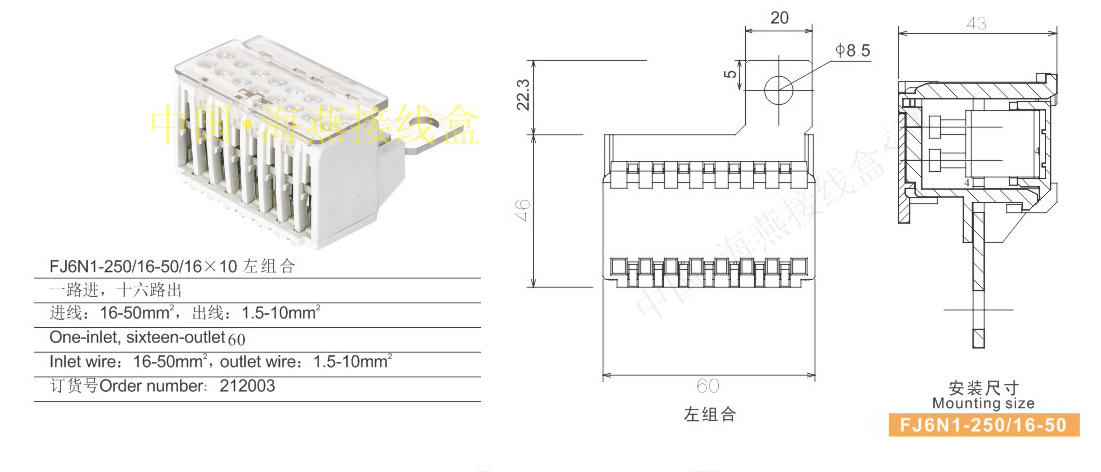 产品分类:FJ6N1-250/16- 50系列零线开关端子279-282