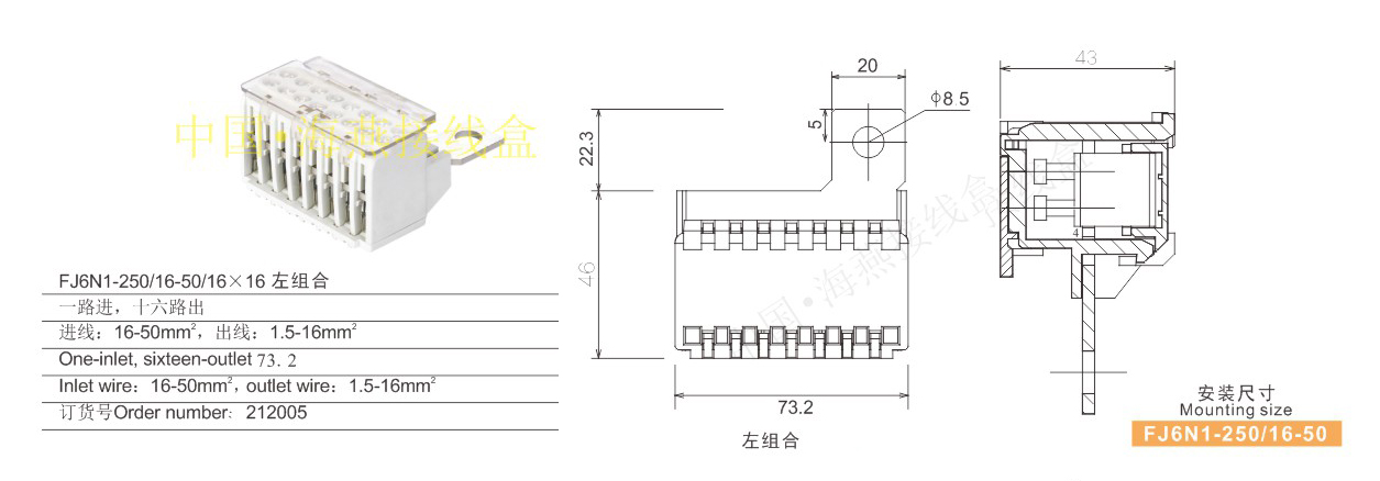产品分类:FJ6N1-250/16- 50系列零线开关端子279-282