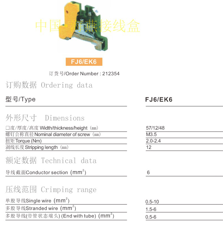 FJ6/EK6接地型接线端子