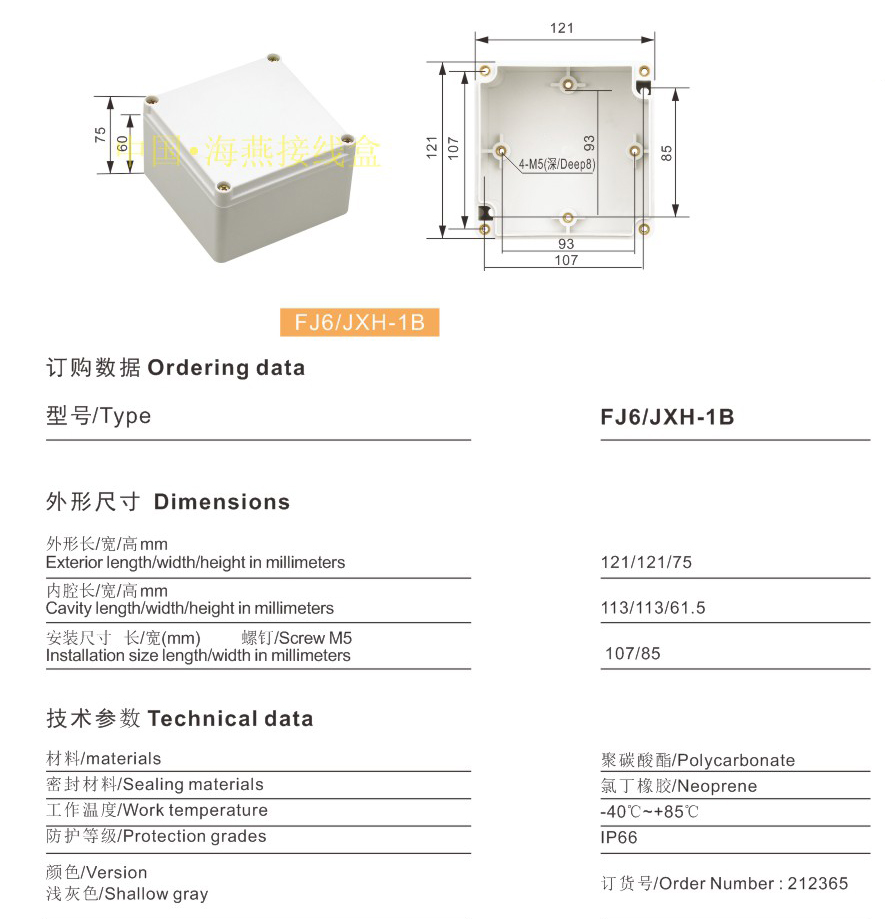 FJ6/JXH-7系列接线盒翻盖透明式370-371