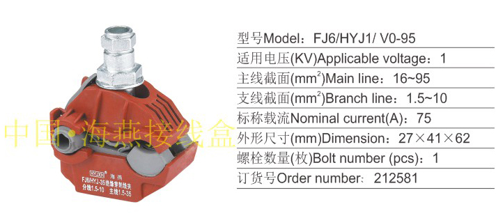 产品分类:FJ6/HYJ HYC、 HYD10/ V0系列防火绝缘穿刺线夹1KV394-400