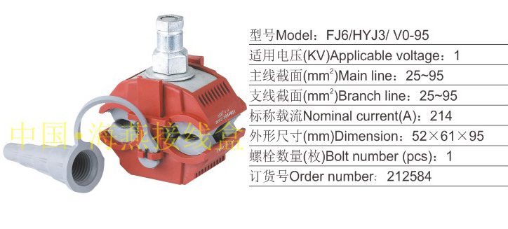 产品分类:FJ6/HYJ HYC、 HYD10/ V0系列防火绝缘穿刺线夹1KV394-400