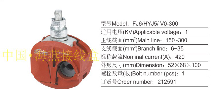 产品分类:FJ6/HYJ HYC、 HYD10/ V0系列防火绝缘穿刺线夹1KV394-400