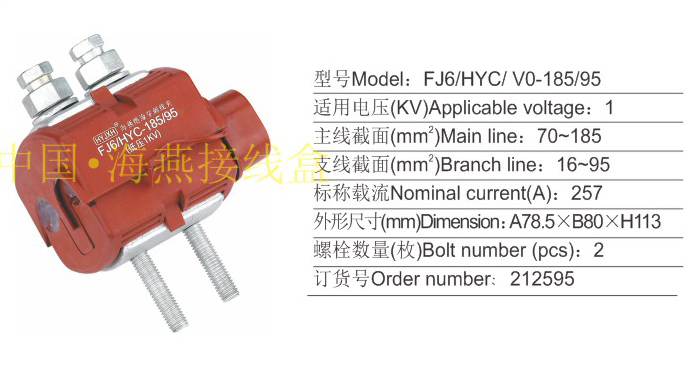 产品分类:FJ6/HYJ HYC、 HYD10/ V0系列防火绝缘穿刺线夹1KV394-400