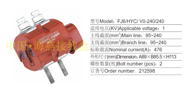 产品分类:FJ6/HYJ HYC、 HYD10/ V0系列防火绝缘穿刺线夹1KV394-400