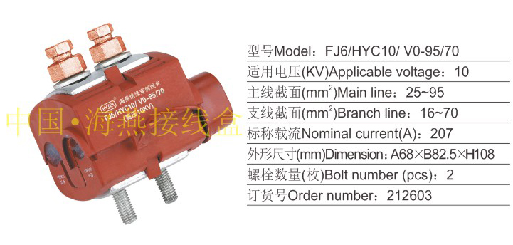 产品分类:FJ6/HYJ HYC、 HYD10/ V0系列防火绝缘穿刺线夹1KV394-400