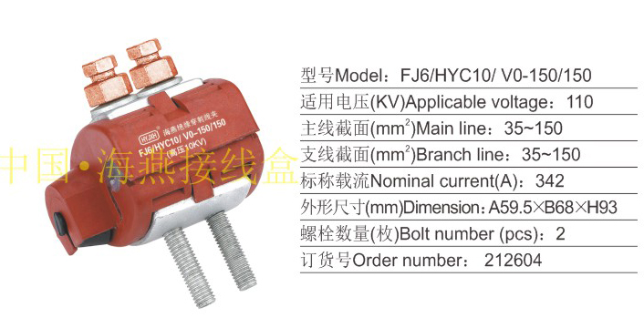 产品分类:FJ6/HYJ HYC、 HYD10/ V0系列防火绝缘穿刺线夹1KV394-400