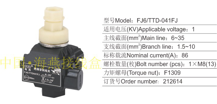 产品分类:FJ6/TTD系列绝缘穿刺线夹1KV401-404