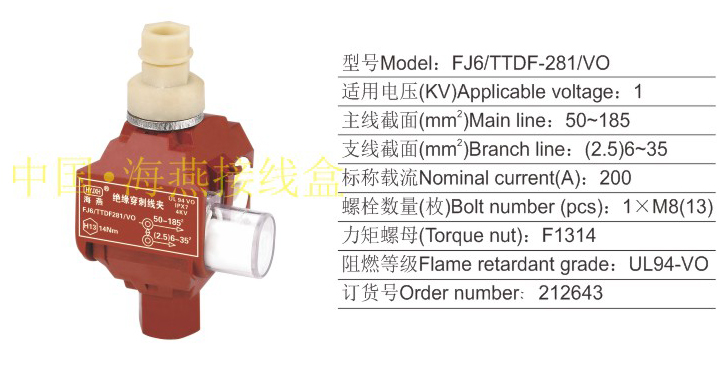 产品分类:FJ6/TTDF系列防火绝缘穿刺线夹1KV405-407