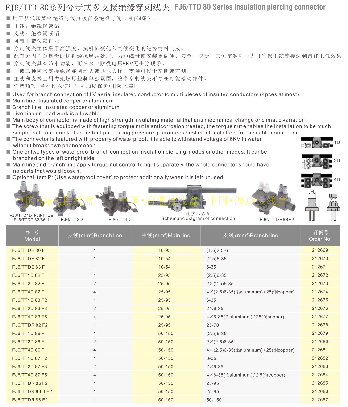 产品分类:FJ6/TTD 80系列分步式多支接绝缘穿刺线夹409