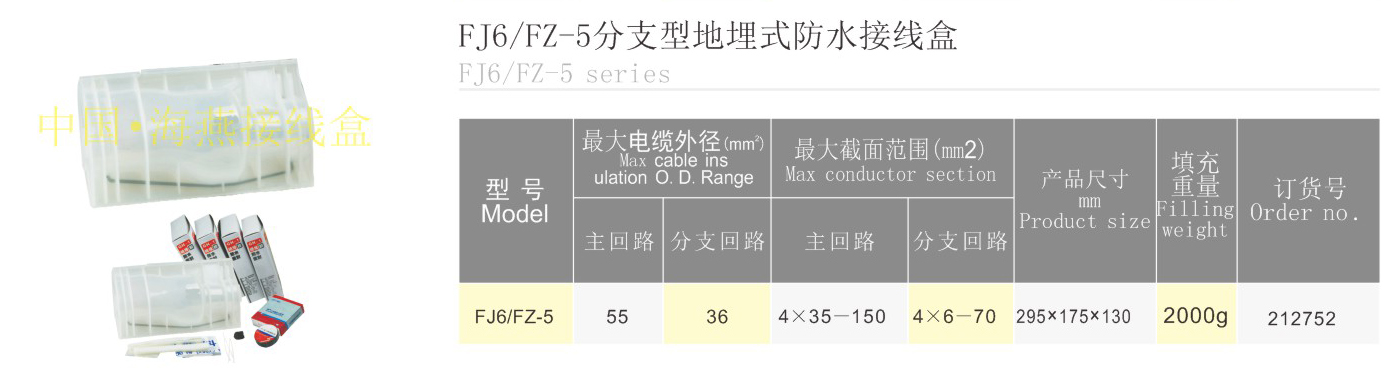 产品分类:FJ6/ZT、FJ6/FZ系列电缆灌胶防水接线盒417-427