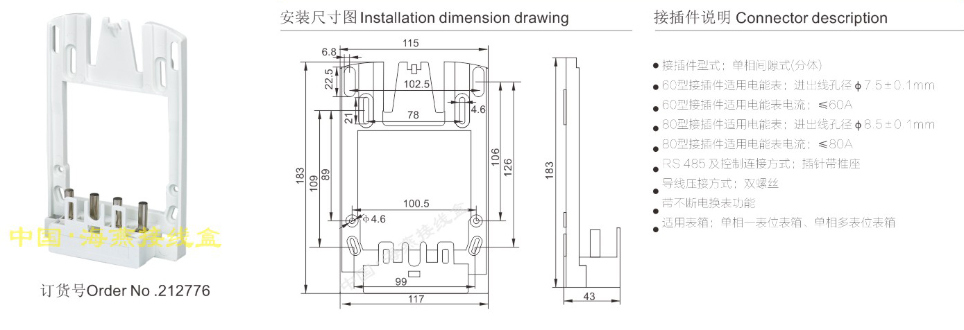 英文名称:Single-phase gap type watt-hour meterconnector (split)