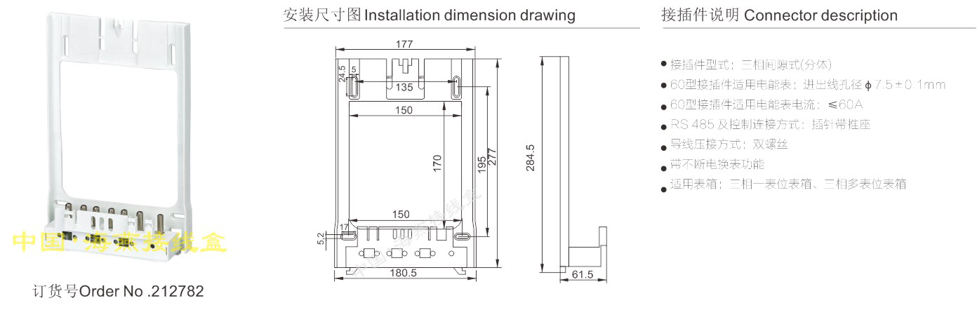 英文名称:Three-phase gap type electric energy meter connector (separate)