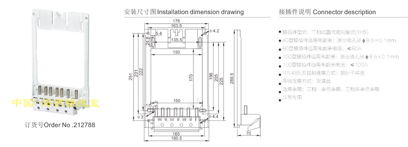 英文名称:Three-phase interference watt-hour meter connector (split)